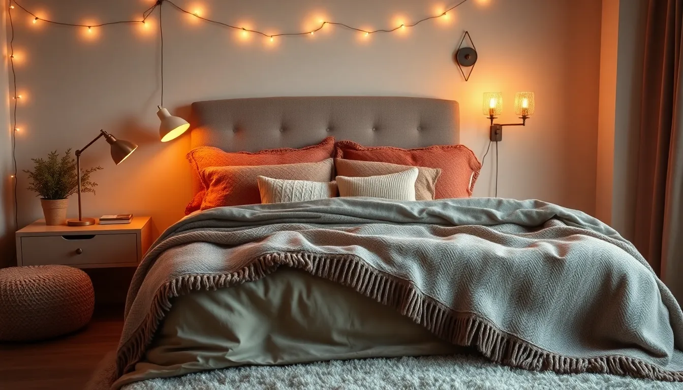 Warm lighting solutions foster a welcoming ambiance. Choose soft white bulbs instead of harsh fluorescents for a gentle glow. Use bedside lamps with dimmers to control brightness levels, allowing for flexibility throughout the day. Consider incorporating string lights or candles for added warmth and charm. Additionally, install ambient lighting fixtures, such as sconces or fairy lights, to create a layered effect. Each of these elements contributes to a snug atmosphere that encourages relaxation.
